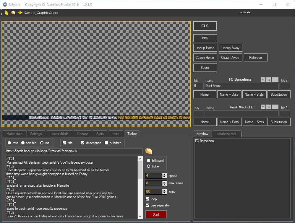 Alternatively, if circumstances do not provide you with automatic sources of information, you can do all these manually by preparing graphics before the broadcast and clicking on simple buttons during the broadcast.